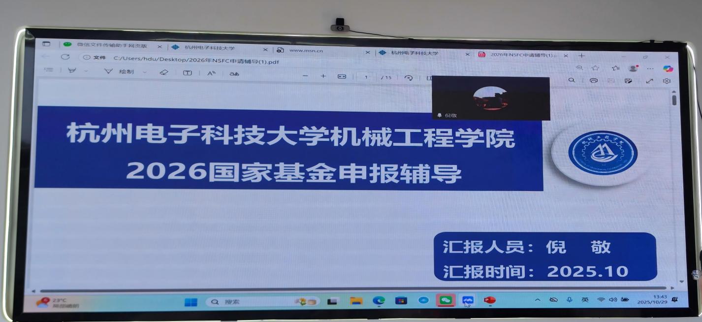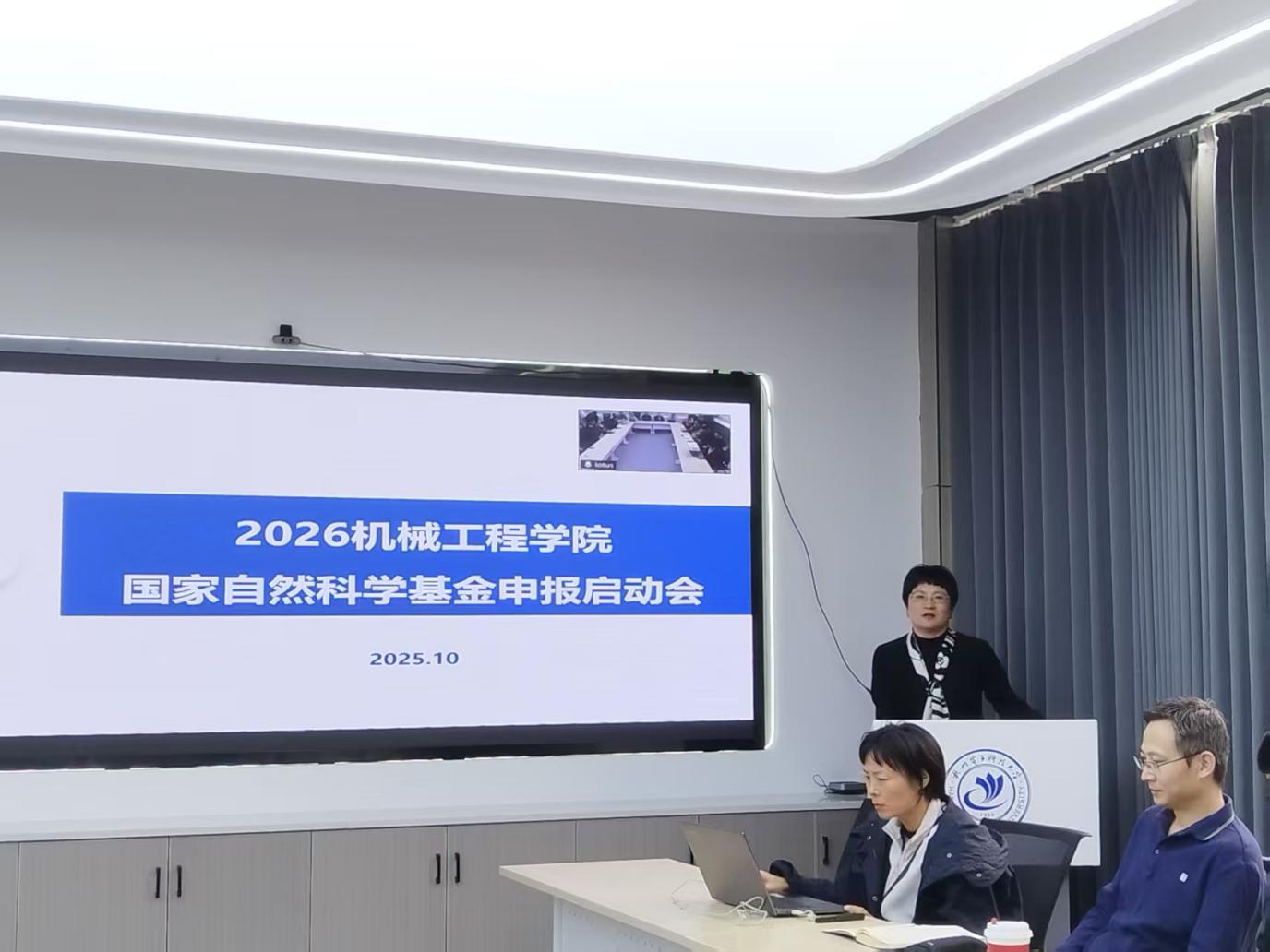 机械工程学院于2025年10月29日下午在学院8教大仪中心会议室召开了国家自然科学基金2026年申报工作启动会暨交流会。会议由科研副院长纪华伟主持。学院党委书记王胡英、学院各科研所长、基金项目申报教师等30余人线下参加了此次会议,院长倪敬线上对参会教师进行指导培训。
