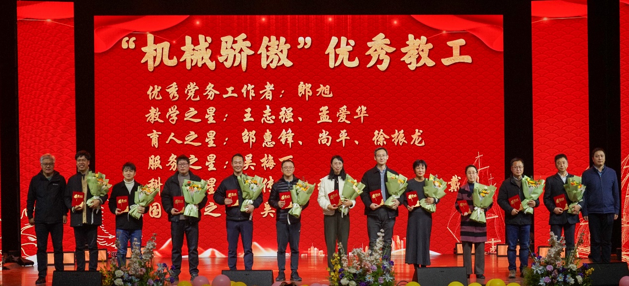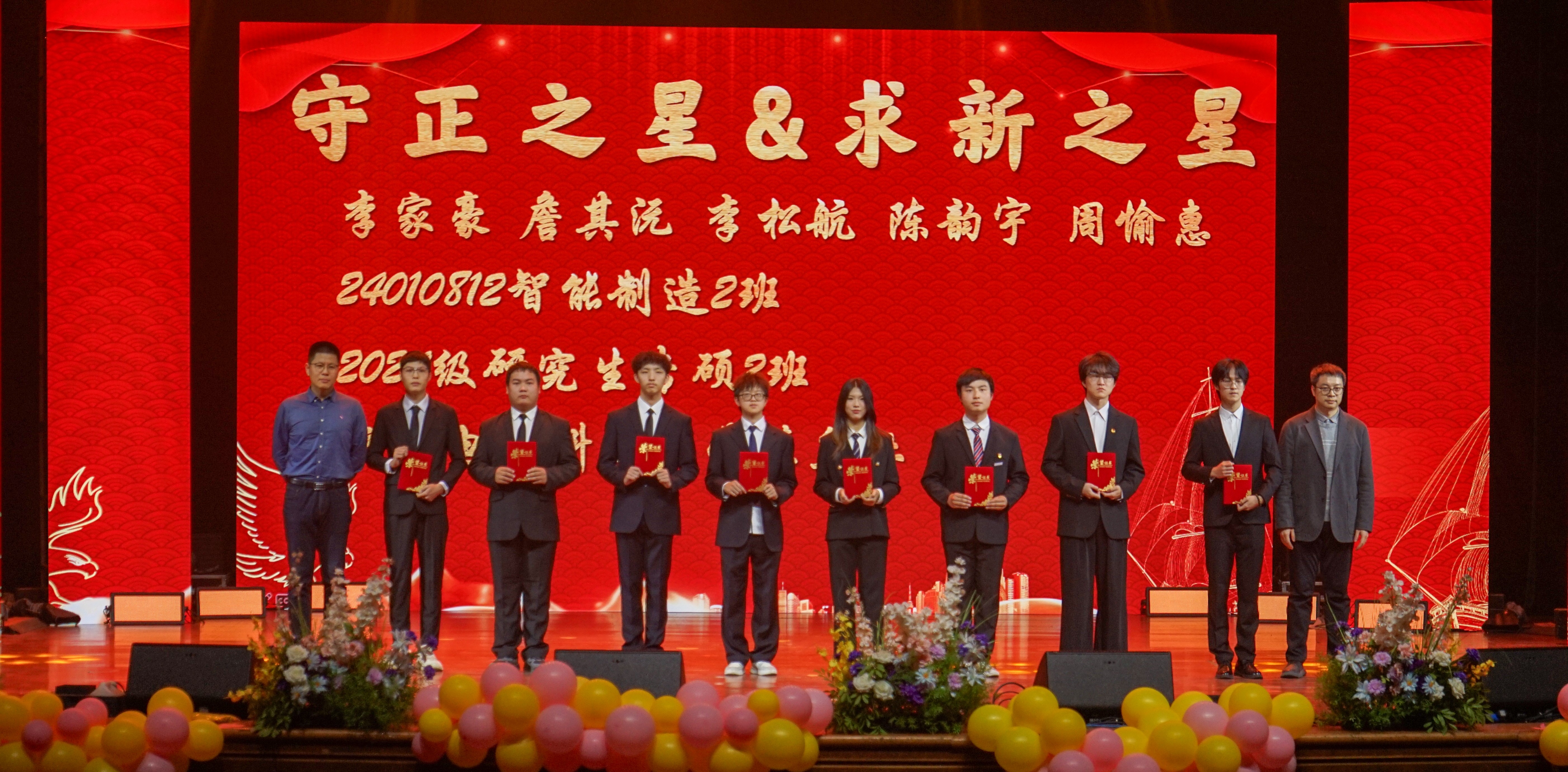 2025年,学院奋楫笃行、踔厉奋发,聚焦海陆空天四大发展方向,参与承办各类赛事并取得优异成绩,构建“机械星光 青春榜样”“机械骄傲”荣誉体系。典礼现场首先对获得笃学之星、力行之星、守正之星、求新之星的学生及团队进行表彰,同时也对“机械骄傲”优秀教工、突出贡献奖教师进行颁奖。典礼现场,在校领导与学院师生代表的共同见证下,学院“精工至善 明德致远”院训正式发布,学院党委书记王胡英老师对院训做阐释。