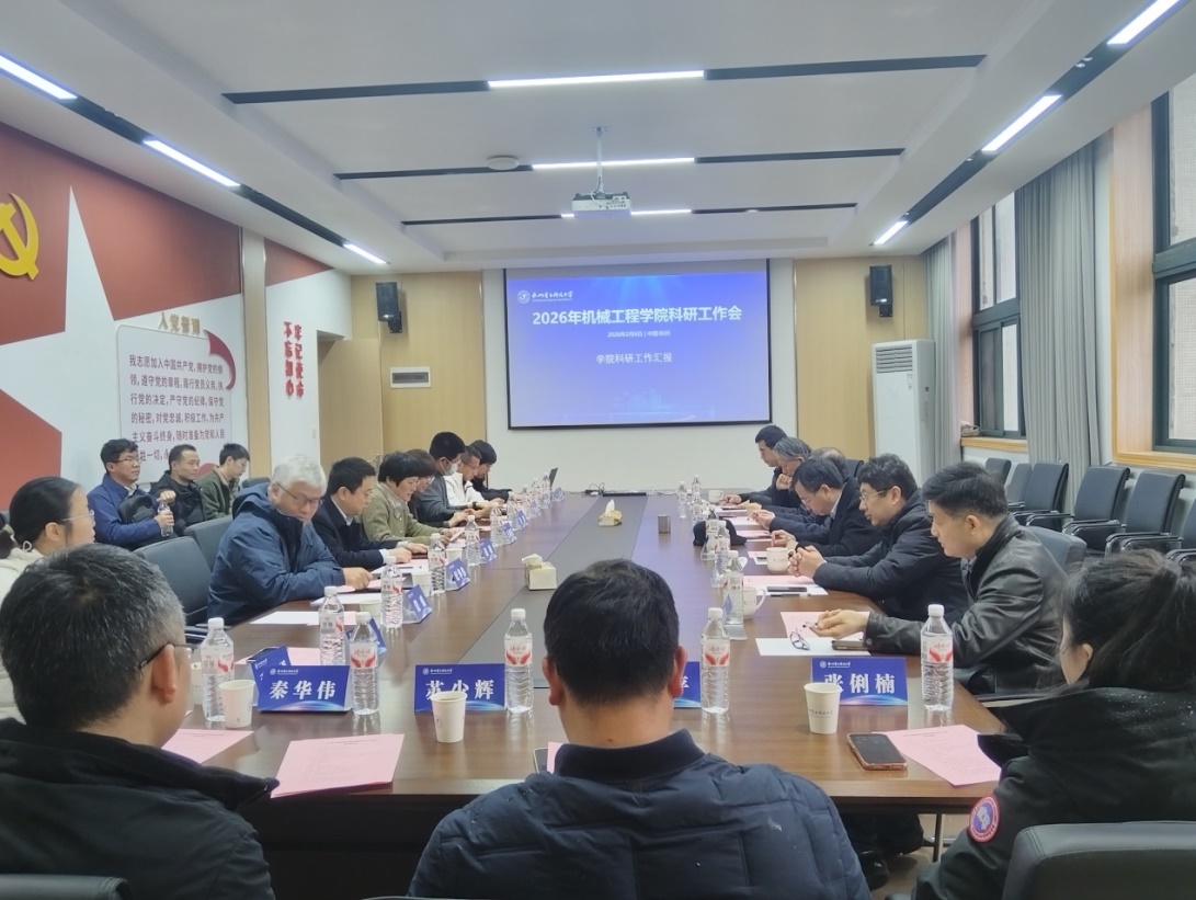 2026年2月6日下午,机械工程学院 2026年度科研工作会在文一校区顺利召开。会议全面总结学院 2025年科研工作成果,分析当前发展形势,部署后续科研工作重点,为学院科研事业高质量发展谋篇布局。嘉兴大学校长梅德庆、杭州电子科技大学原校长朱泽飞、中国商飞 C929机首席专家、前总师陈迎春、浙江工业大学机械工程学院院长谭大鹏、浙江理工大学机械工程学院副院长向忠、杭州电子科技大学研究生院院长范影乐等专家学者应邀莅临指导。学院党委书记王胡英主持会议,院长倪敬、科研副院长纪华伟及学院各团队负责人、科研骨干共 20余人参加会议。